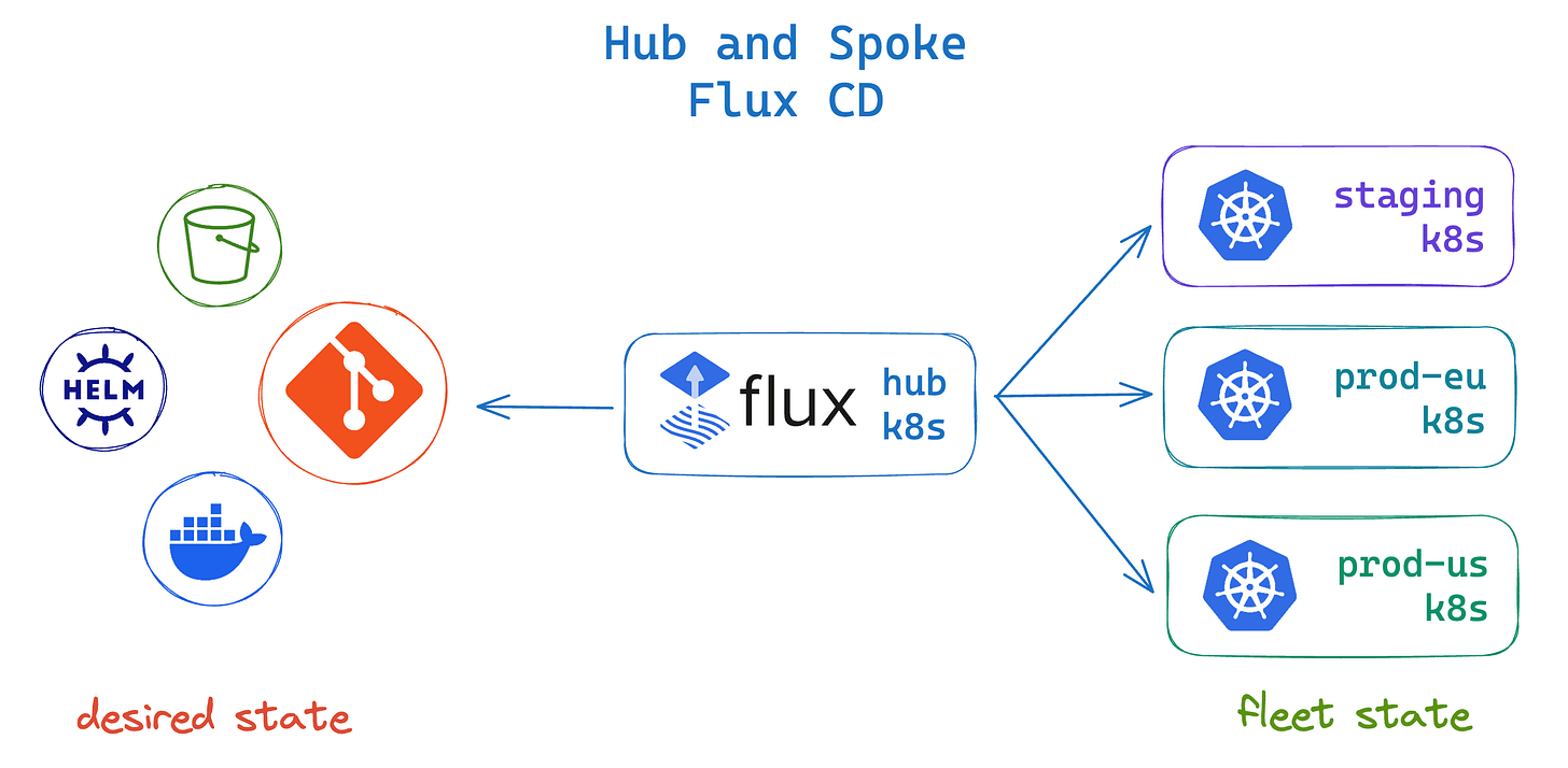 For more information on how to configure Flux for Hub and Spoke mode, see the flux2-hub-spoke-example repository.