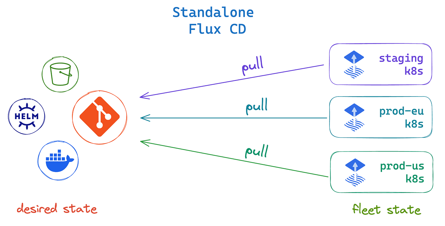 Standalone - Flux is bootstrapped on each Kubernetes cluster.