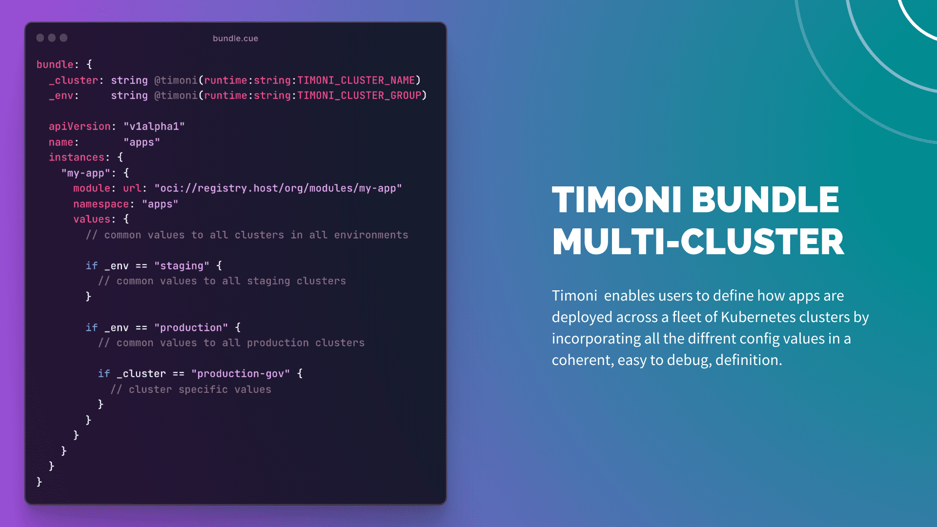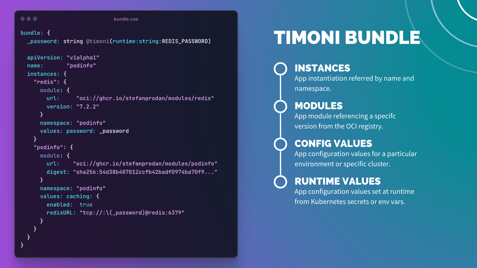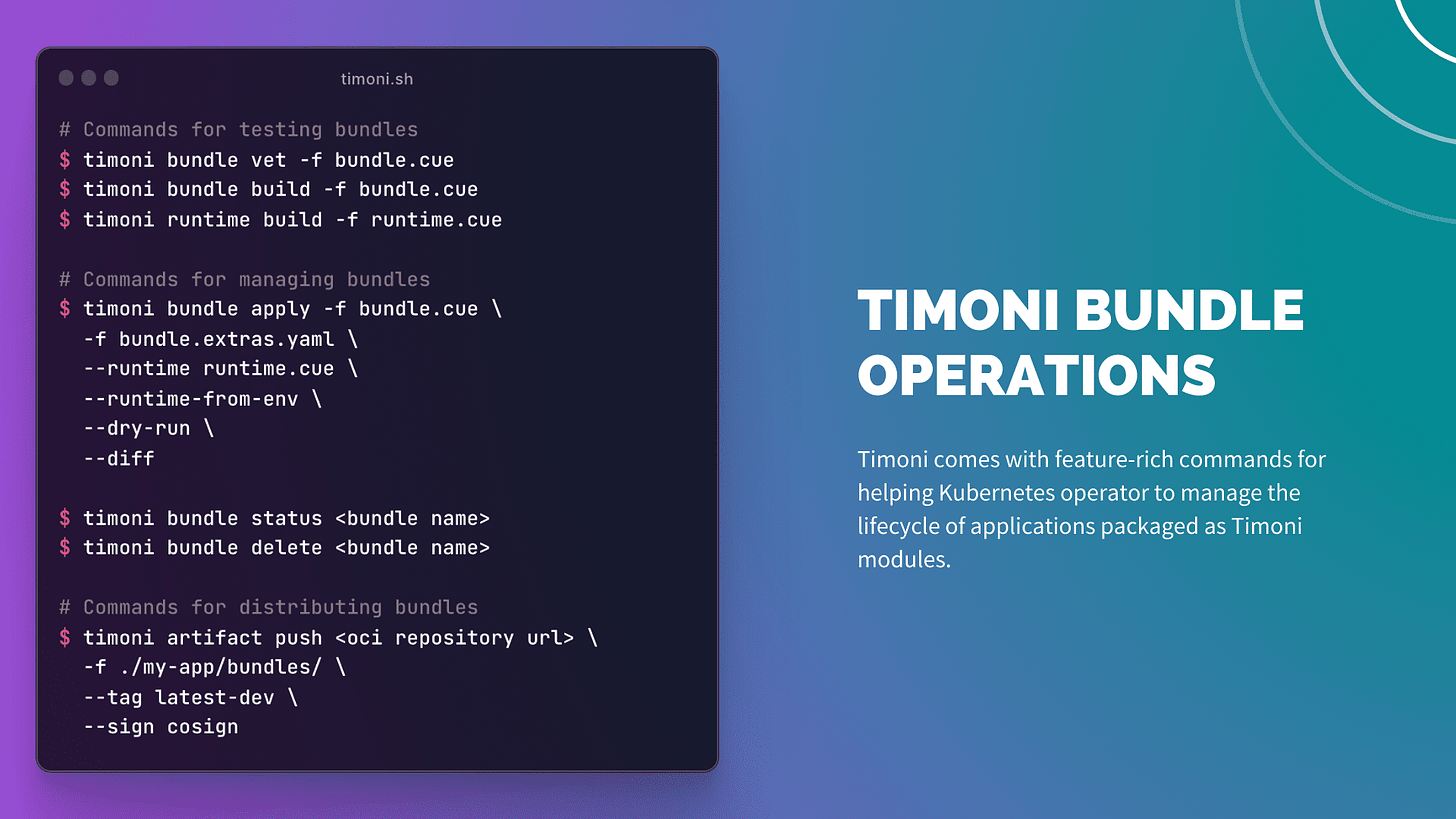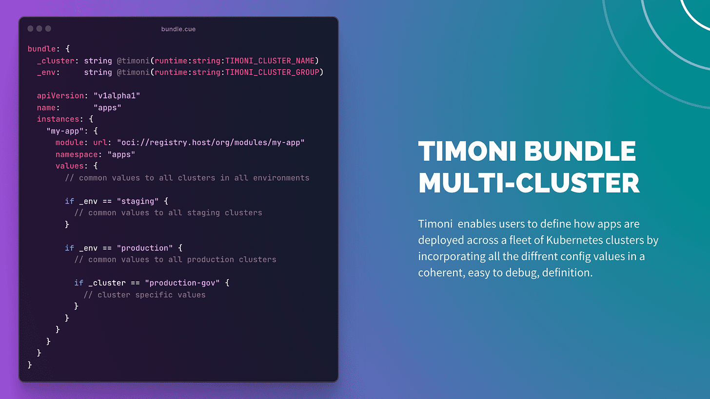 For an in-depth overview of Timoni’s bundles, see the documentation at timoni.sh/bundle.